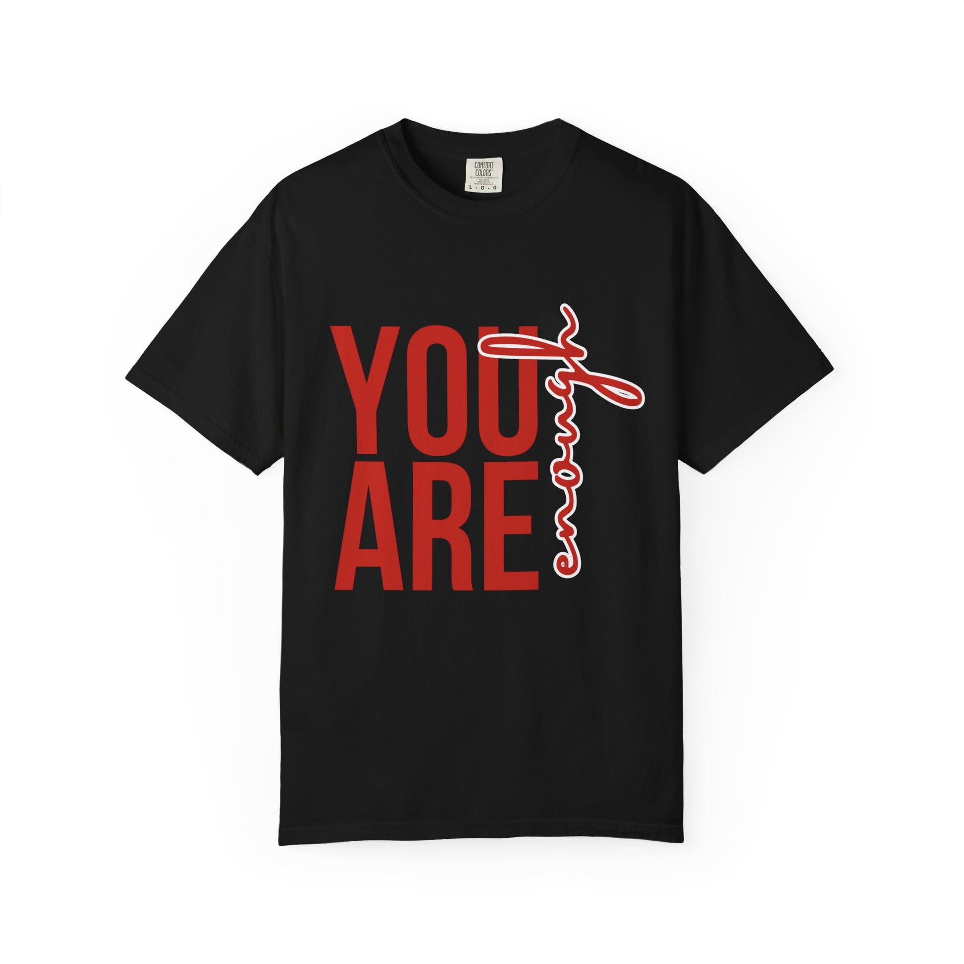 Wear your confidence with pride in this empowering “You Are Enough” tee. More than just a shirt, it’s a reminder that you already have everything within you to shine. Designed to inspire positivity and self-love, this piece is perfect for uplifting your mood and spreading encouragement wherever you go.